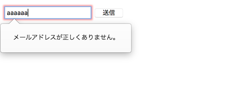| <input type="email"/> <!-- これだけでブラウザが簡易的なバリデーションを行う --> | |