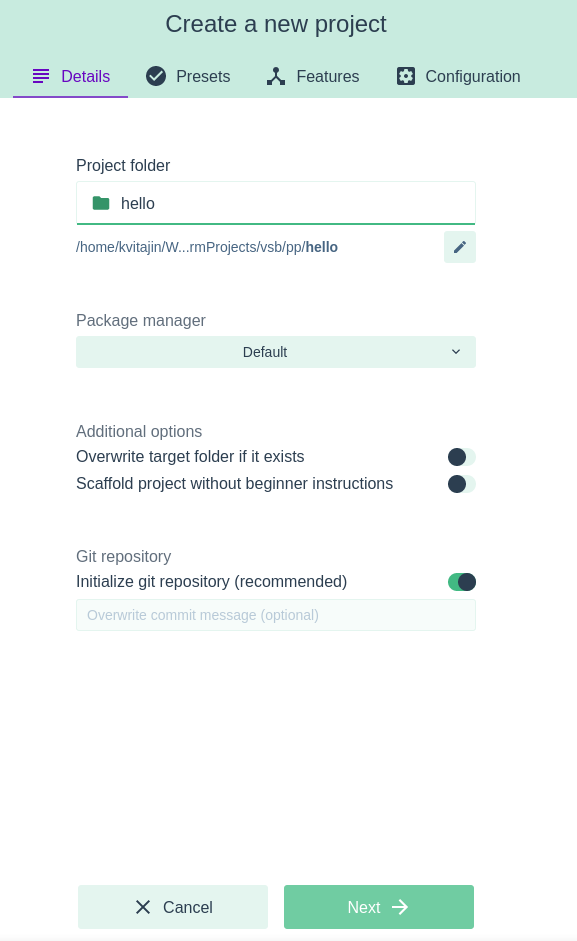 ve složce, kde je projekt umístěn, stačí zadat přékaz