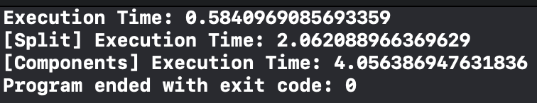 | print("\(description)Execution Time:", end.timeIntervalSince(start)) | |