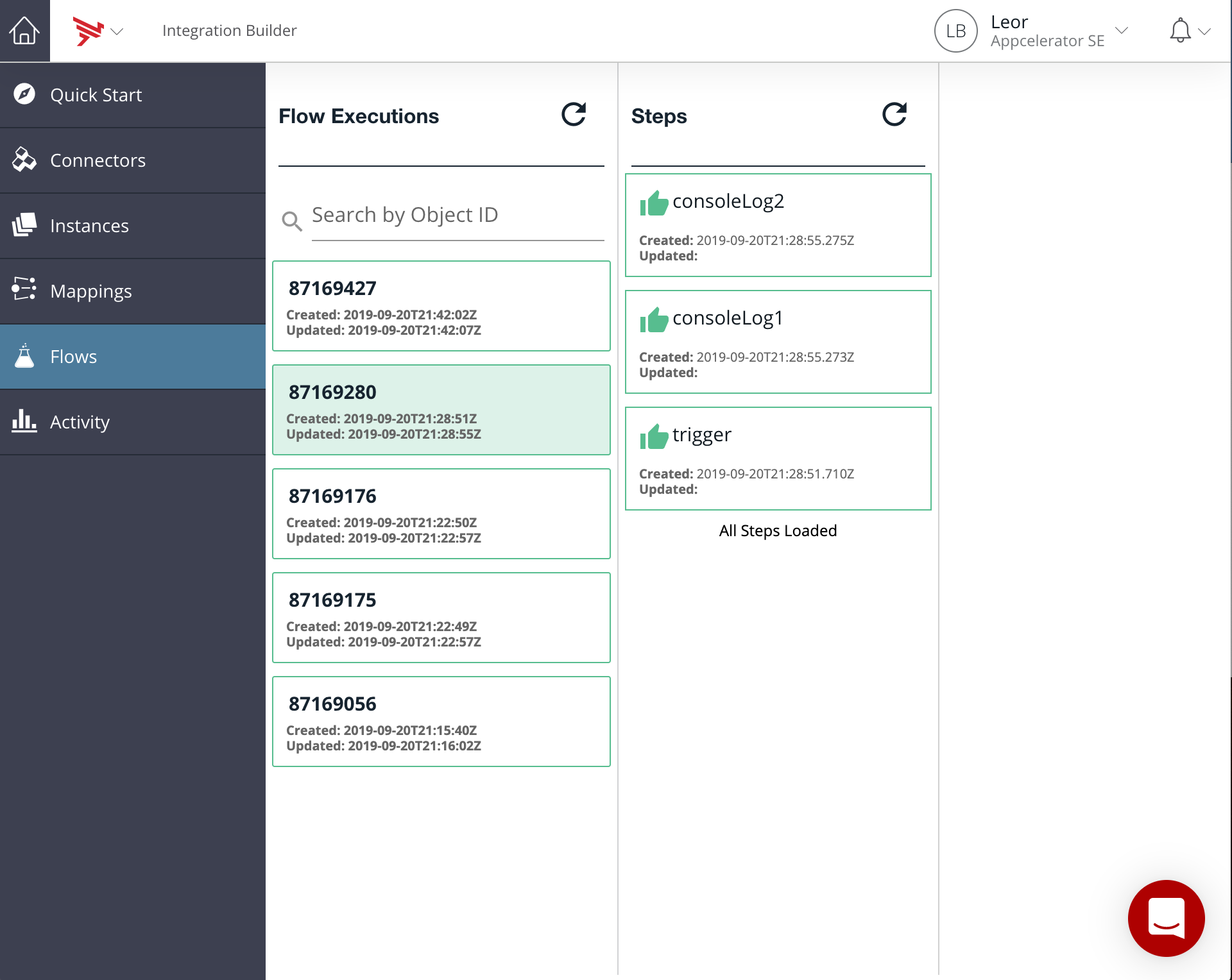 You should now see you flow steps in the execution screen
