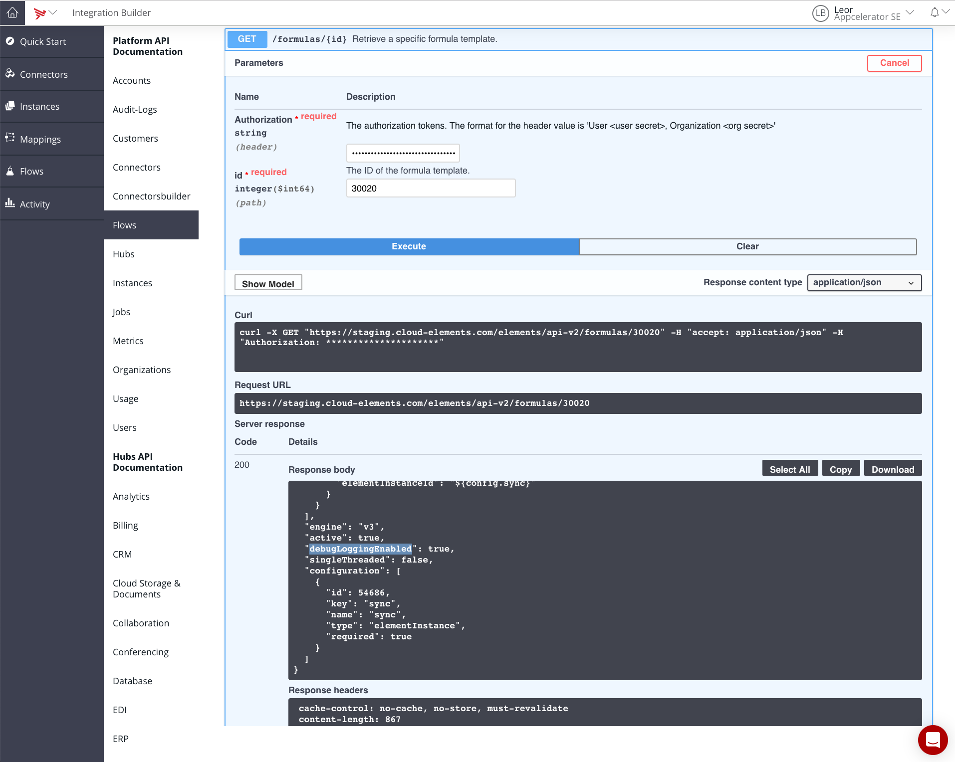 Go to the platform API Docs (Quick Start -> View our API Docs -> Flows)