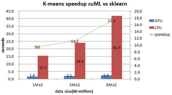 When sorting the data frame by values in one column, the GDF outperformed the PDF by an average of 15.5x faster (range 2.1x-23.4x). Due to the GPU in the AC922 only having 16GB of RAM, the 40 million row data frame was not able to be sorted so these number include the results of the sort on the DGX-1 for the 40 million row data frame.