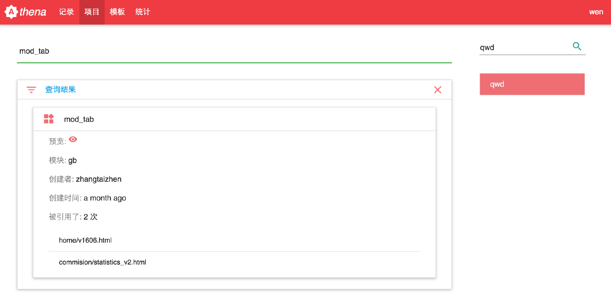 组件管理,结合组件平台来使用,在管理平台上引用组件地址预览组件,同时可以获取到组件被引用以及引用资源(如css、js、图片)的相关情况。
