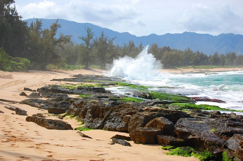 - Waimea Bay The most popular and photogenic beach on the North Shore. Waves are gigantic in the Winter, but break further off the shore. This is a very popular spot for swimming with locals and experienced tourists. It's also close to Waimea Valley, a historical place that showcases some of the richest nature and farmlands in Polynesia. Worth checking out at some point if you want to understand how the ancient Hawaiians lived.