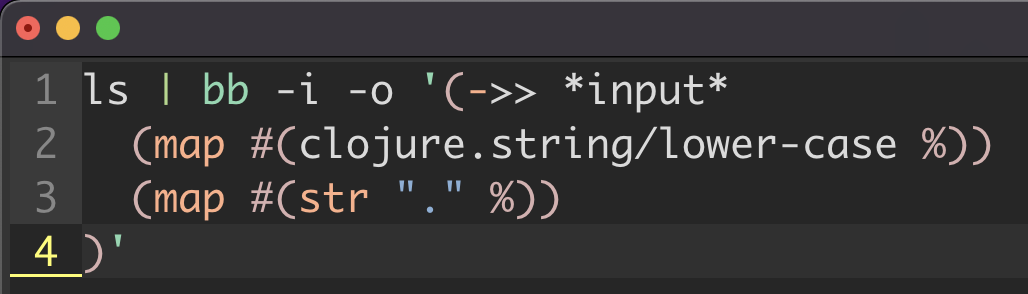 syn region CLJScriptEmbedded matchgroup=CLJCommand start=+\<bb\>+ skip=+\\$+ end=+[=\\]\@<!'+me=e-1 contains=@shIdList,@shExprList2 nextgroup=CLJScriptCode | |