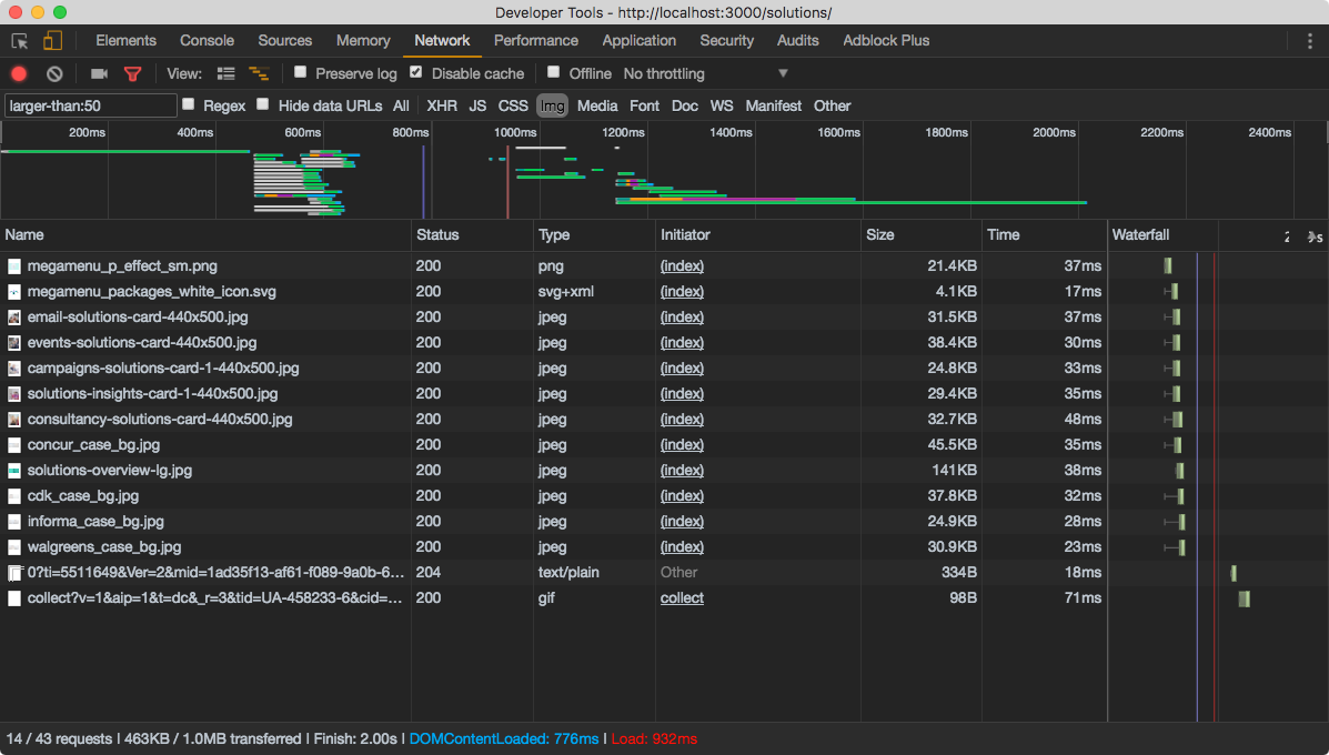 ⭐ Use the larger-than Network panel filter to quickly find big resources. See list of filters in the official docs.