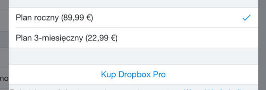 Now it's only $118/year or $10/month, which is much cheaper than through their website (and they still have to give 30% of that to apple!). I guess we should thank apple for not allowing different pricing in different regions. So if you plan to upgrade to Dropbox Pro, do it through their mobile app.