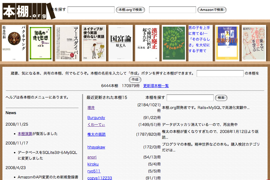 - 本棚.org, 地図帳.org, QuickML, 単語帳.org, Gyazz, Gyamm, Gyaki