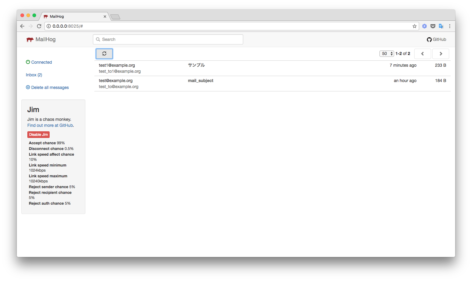After building, when you access http://localhost:8025, this screen will be displayed.