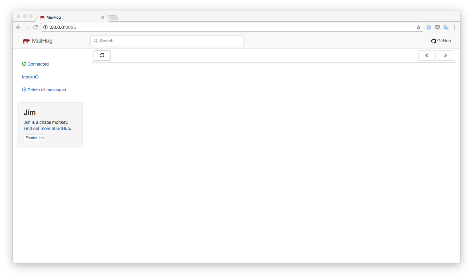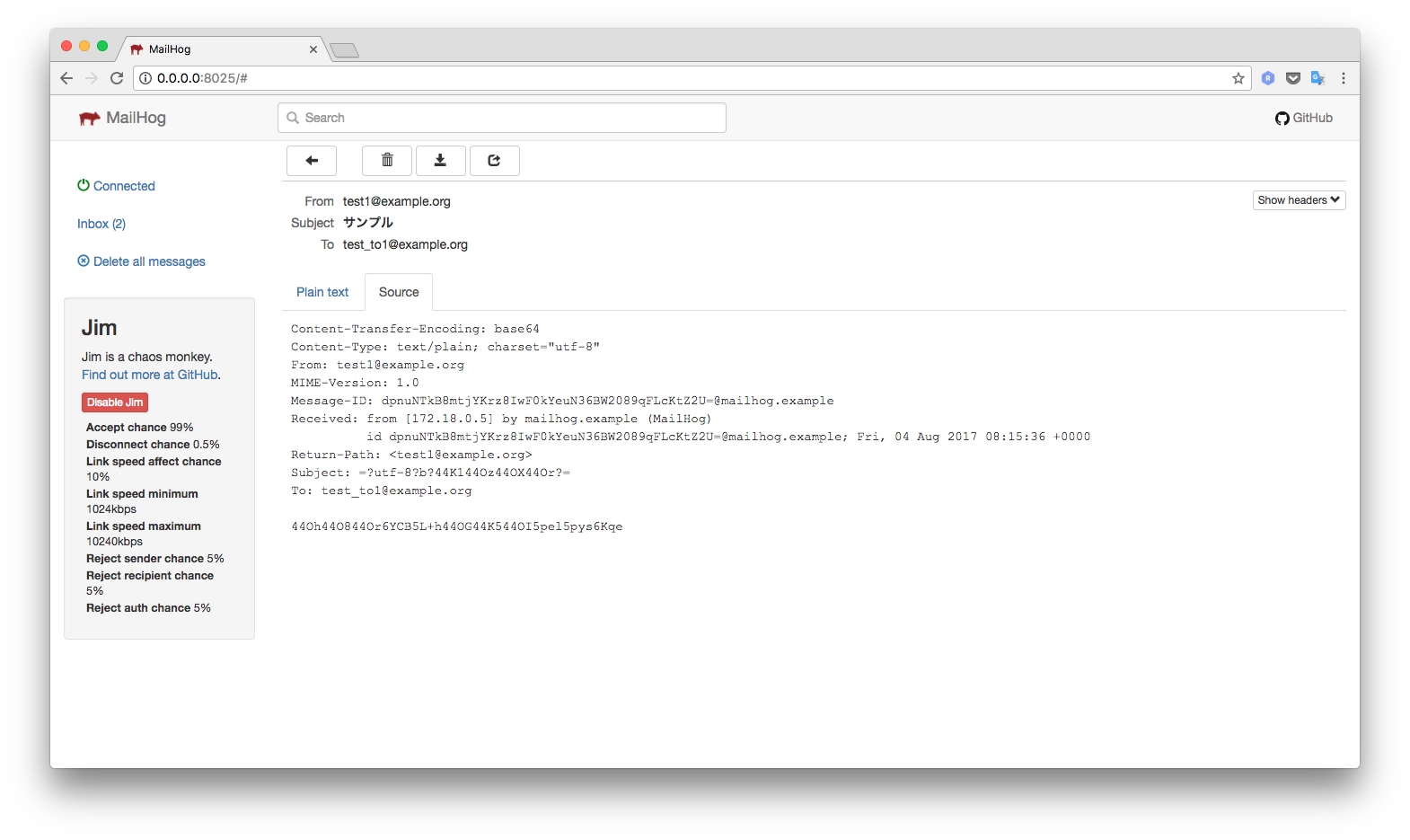 After that, if you send an email to the MailHog container, you can check it on this screen