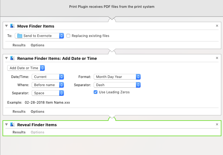 Note you may also want to make the following Print Plugin Automator Script which will allow you to "print" a PDF directly to that folder which will then be saved to Evernote for you. Just be sure to make sure both scripts point at the same folder.