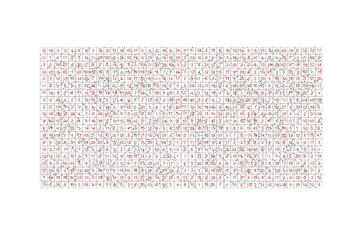 text(xy, label = xy$n, col = "firebrick", cex = .5)