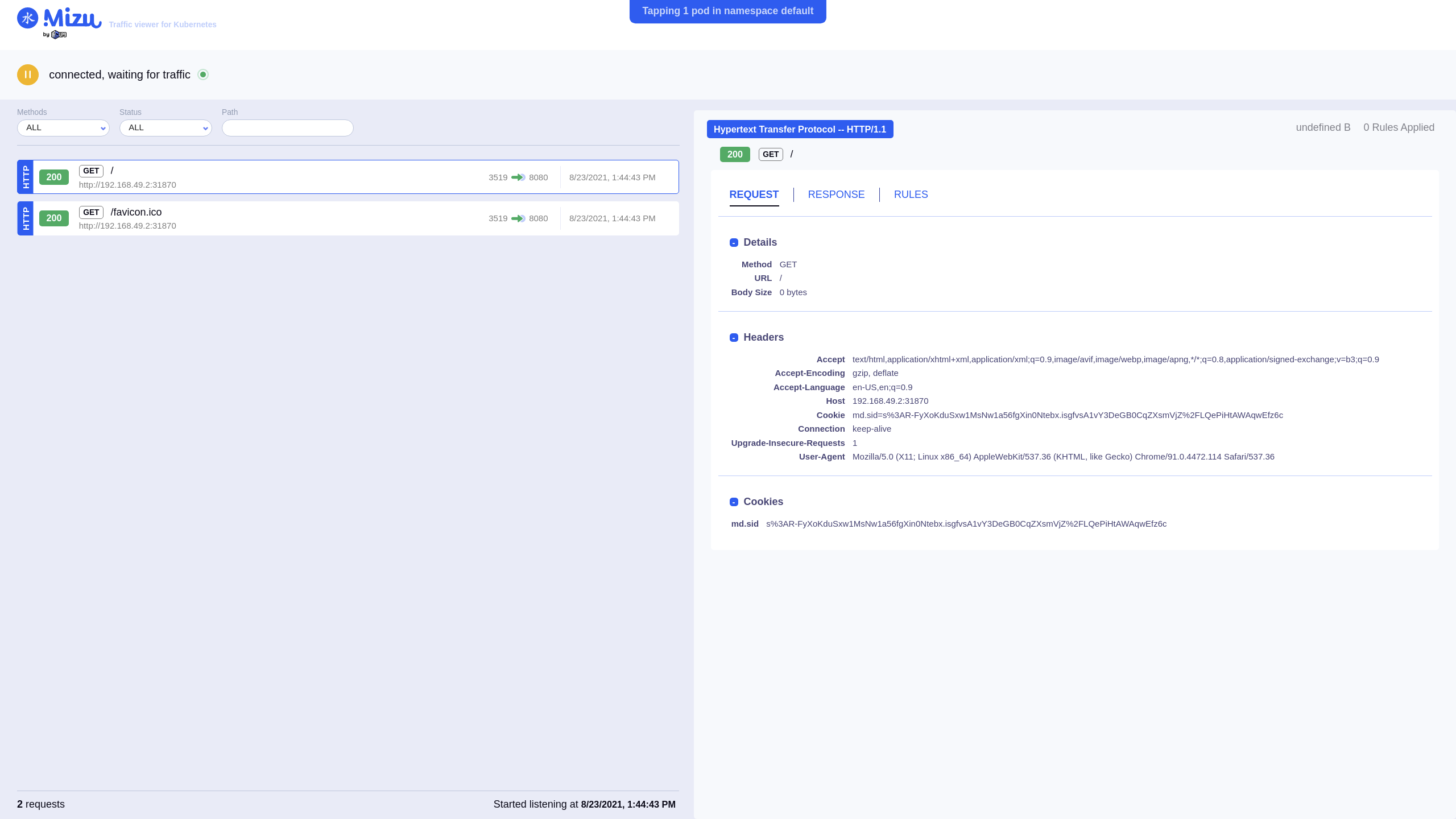 $ ./cli/bin/mizu__ tap hello-node-7567d9fdc9-f9n7r