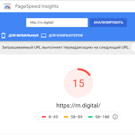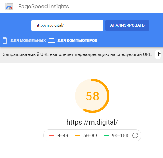 Заходим в https://developers.google.com/speed/pagespeed/insights/?url=rn.digital и смотрим
