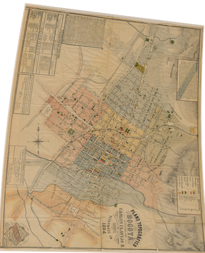 Esto es lo que queremos hacer. Un mapa de Bogotá de 1891 conservado en la Biblioteca Nacional de Colombia (el link requiere Flash Player) enriquecido con datos extraídos de un directorio de Bogotá de 1888.