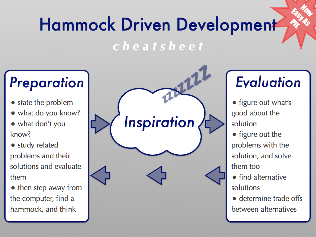 The point he made by the end of the talk was something like: if you will think hard and well about a problem and write down what you learn then you will position yourself to confidently implement a solution on your first attempt