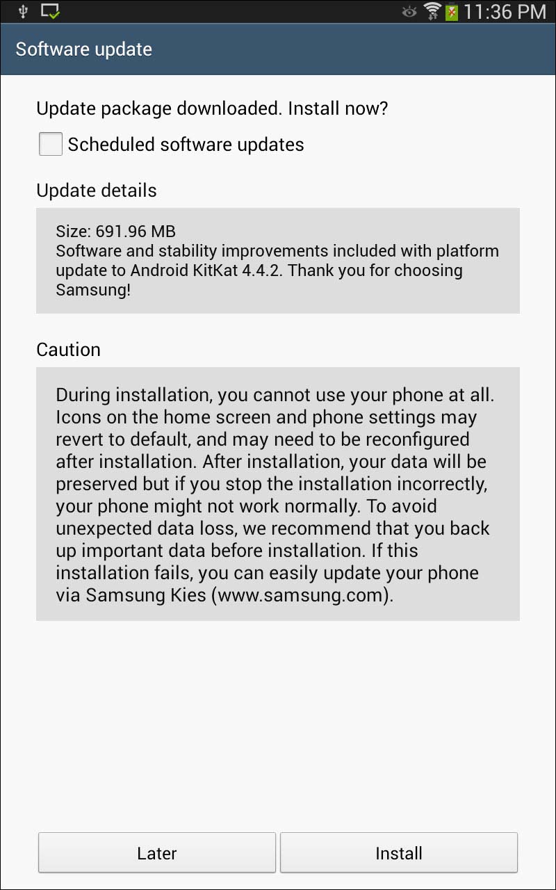 - Khi hoàn thành, sẽ có cửa sổ Cập nhật phầm mềm. Chọn Cài đặt. Máy sẽ khởi động lại.
