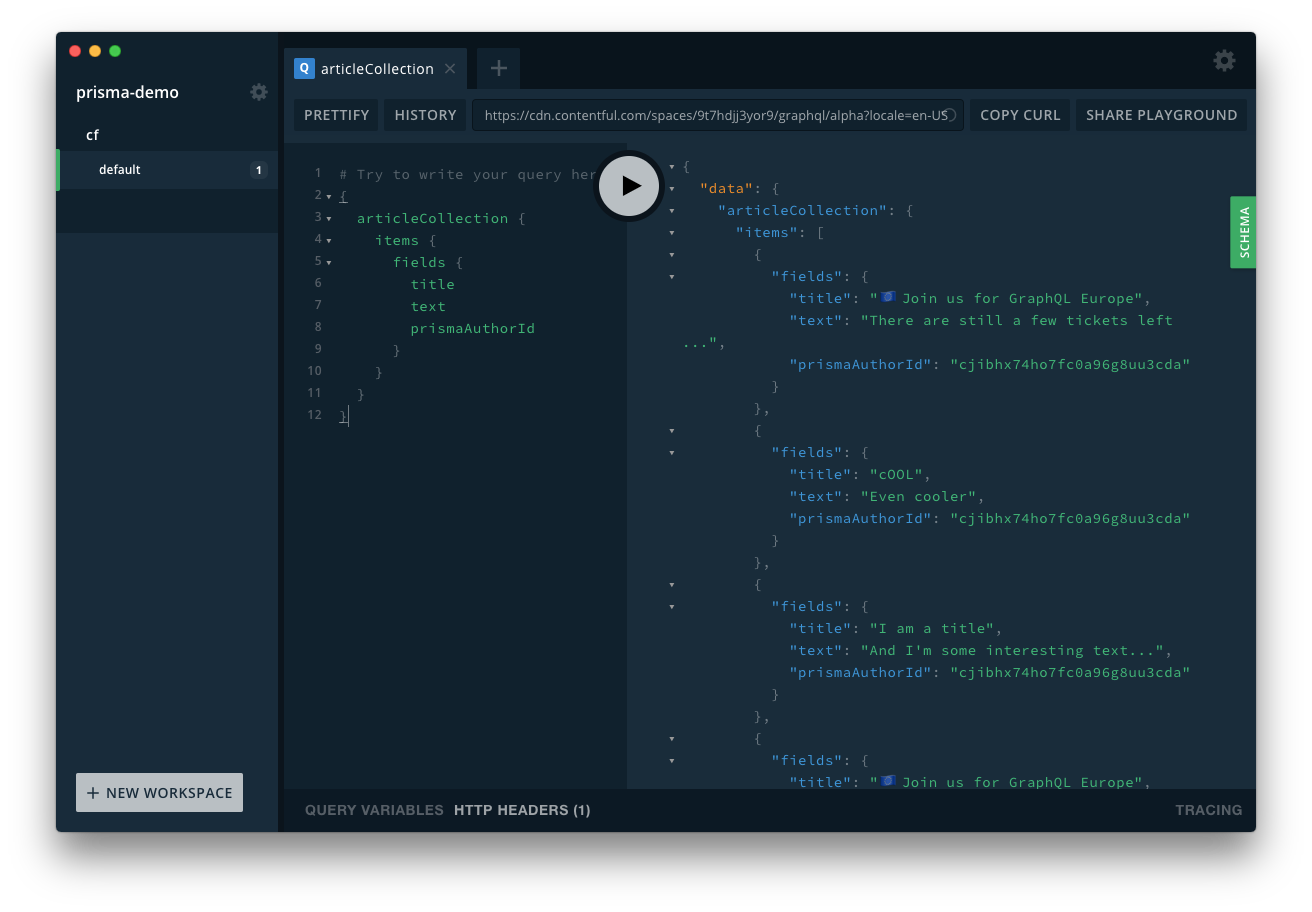 Use the Contentful GraphQL API inside a GraphQL Playground