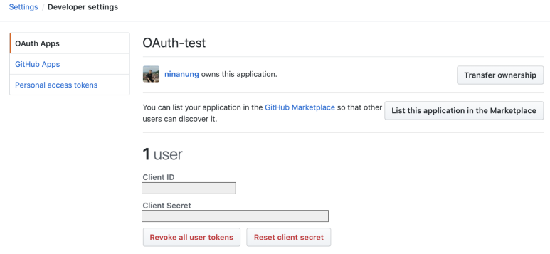 Client ID와Client Secret이 보일것이다. 이 두가지는 등록된 App의 열쇠와 같다. 흔히들 Key값 이라고 하는 특정한 문자열이다. 앞으로의 코딩에서 필요한 것이므로 텍스트를 복사해서 확인하기 쉬운곳에 옮겨두자.