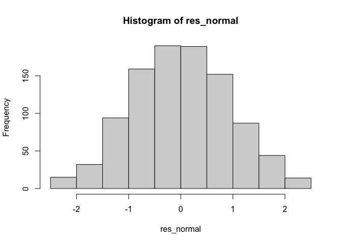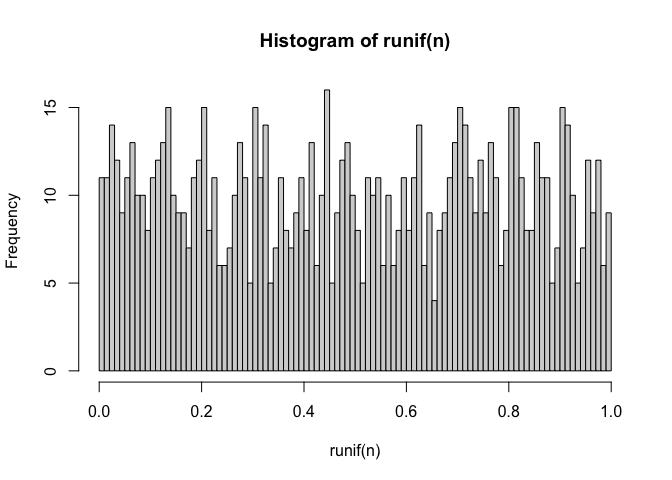 hist(res, breaks = 100)hist(runif(n), breaks = 100)res_normal <- qnorm(res)