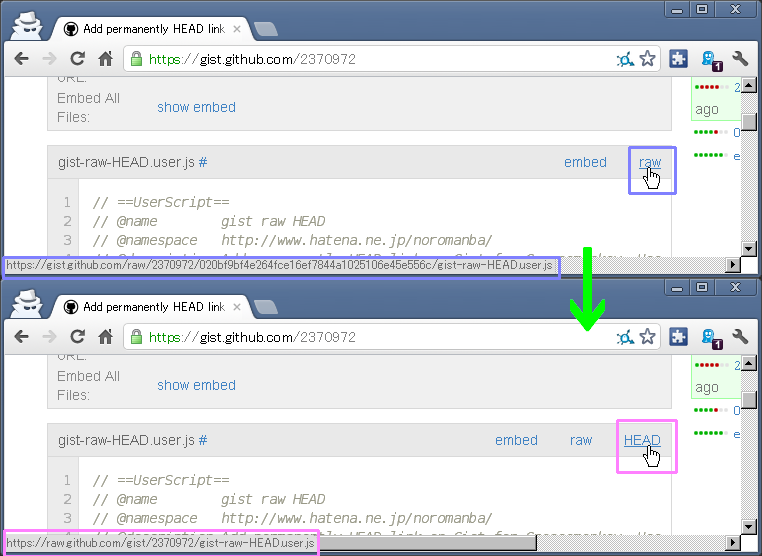 // @description add permanently HEAD link on Gist for UserScript |