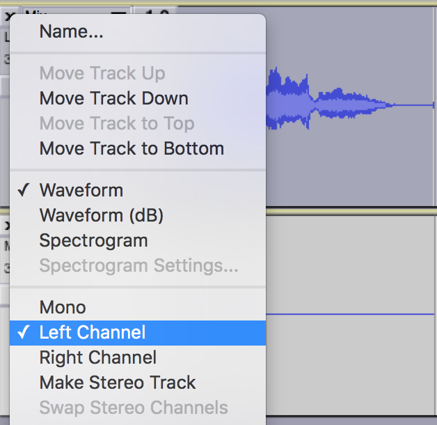 - If you use Audacity, select (Shift+click) pairs of channels and mix them into a single track for input and another one for output with the Mix & Render transform in the "Tracks" menu.