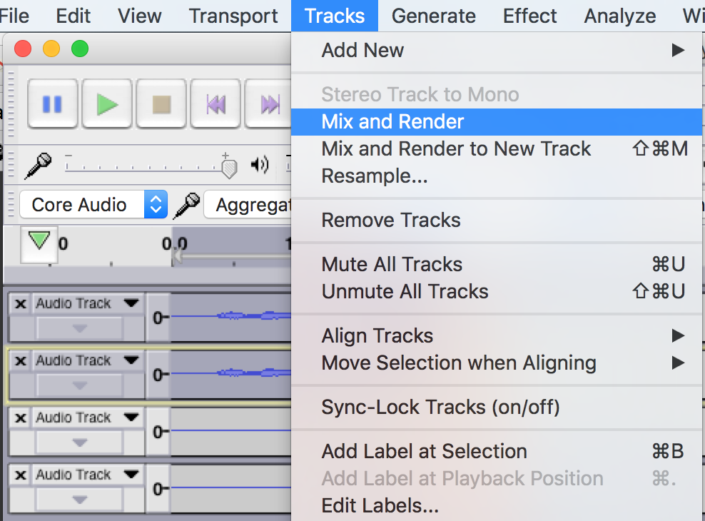 - Record audio. Audacity is a powerful free tool to manipulate audio files and streams. Use it (or similar software) to record a call with your aggregate device as input. The recorded stream will effectively have 4 channels: 2 carrying stereo output from your speakers, and 2 carrying stereo input from your microphone.