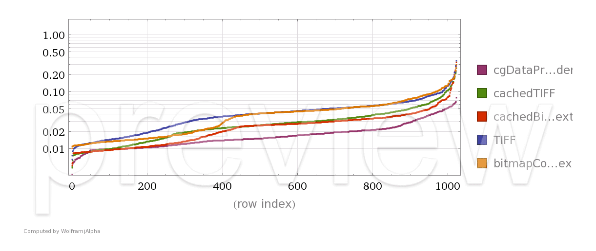 Here's a comparison against some other algorithms, y-axis is time, x axis is sample number, samples ordered by elapsed time: