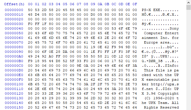 Ken Kutaragi is the name of “The Father of the PlayStation” – an executive who spearheaded the development of the PlayStation, so already, we have a hint that the challenge concerns the PS1. This is further confirmed by taking a closer look at the file: although it's an EXE, Windows can't run it, and taking a look at it in a hex editor reveals the following: