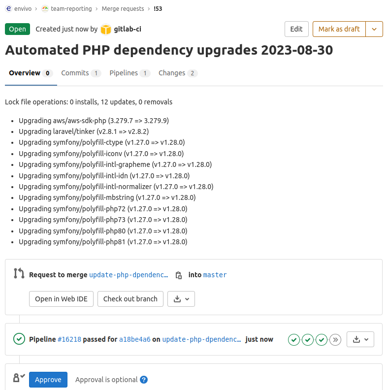 As a result, a new Merge Request is created, ready to be reviewed, merged and deployed: