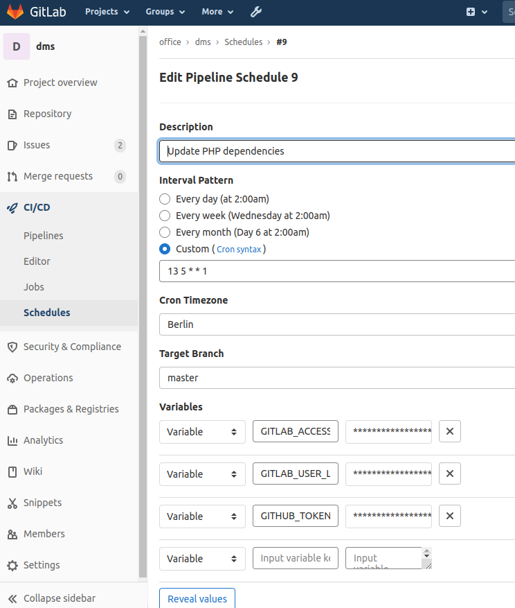 - Create a GitLab Acess-Token with API permission for a GitLab user