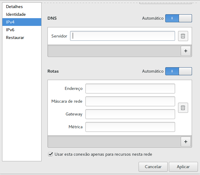 - Selecione o item "Usar esta conexão apenas para recursos neta rede"