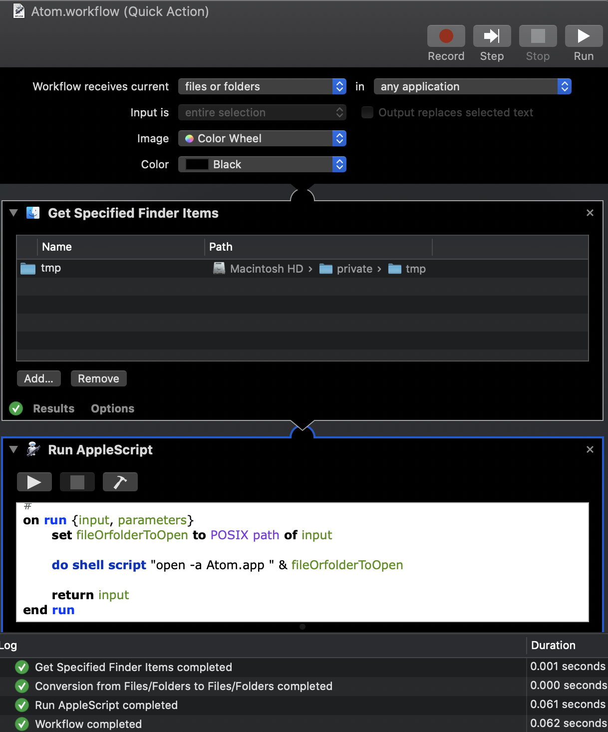 | do shell script "open -a Atom.app " & fileOrfolderToOpen | |