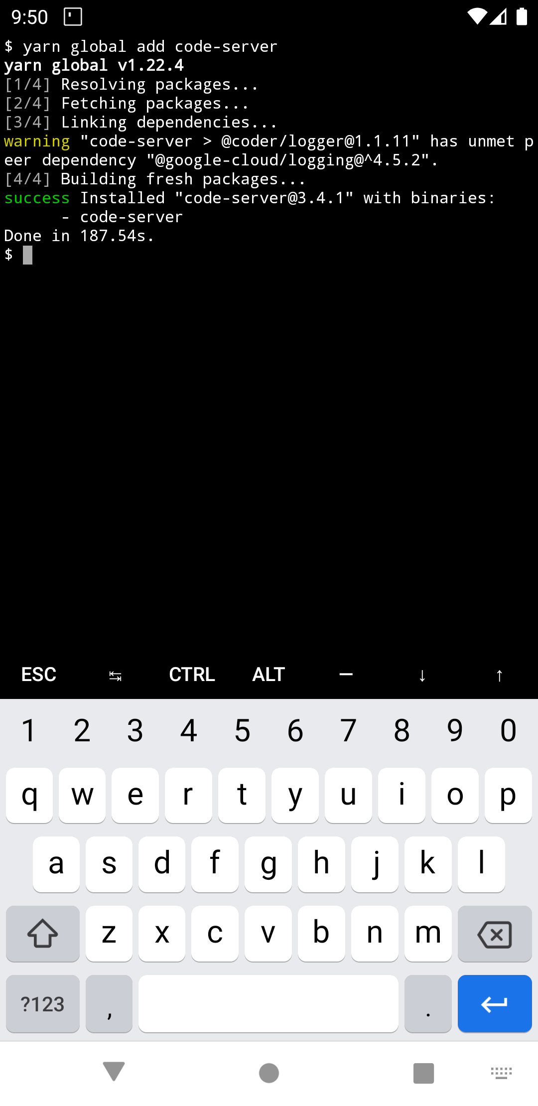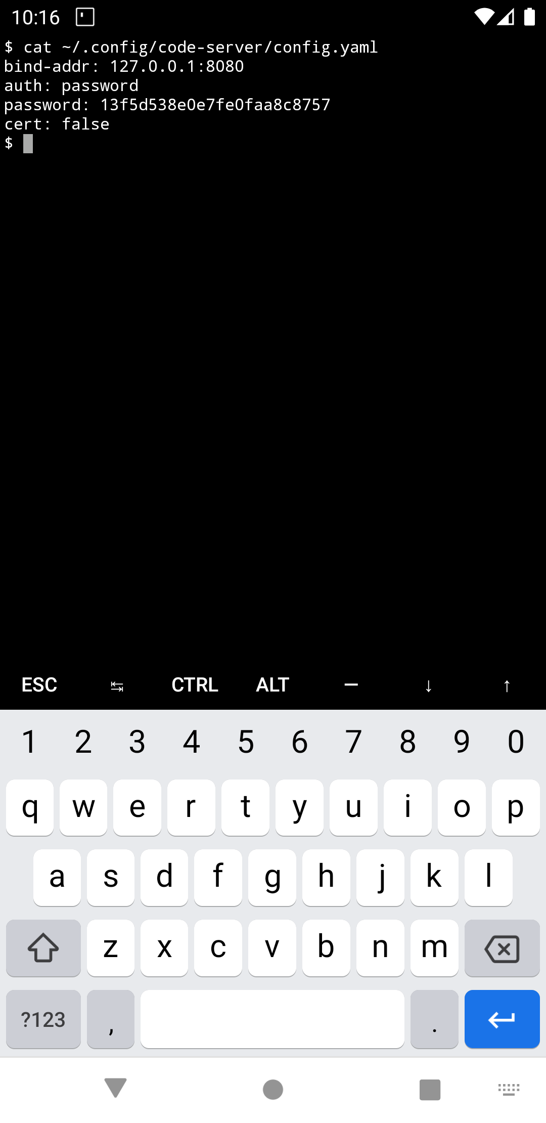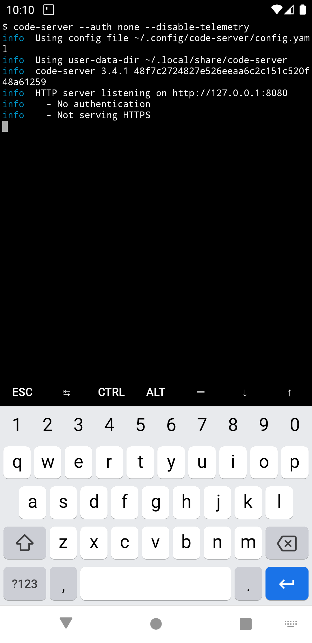 openssl-tooland let code-server generate a certificate on startup:$ pkg install openssl-tool $ code-server --bind-addr 0.0.0.0:8080 --cert --disable-telemetry