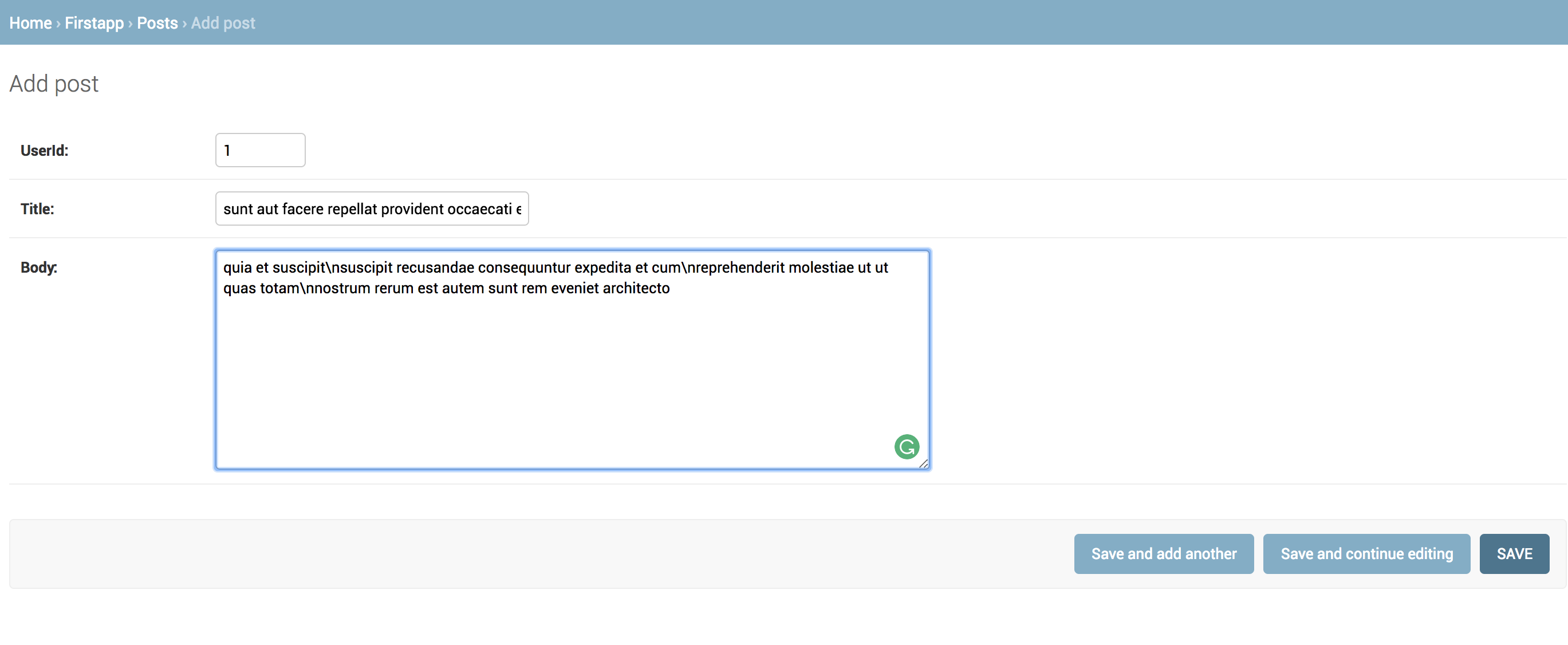Now our records are available but we can't see them on the frontend. In the next step we will expose the model using Django REST framework.