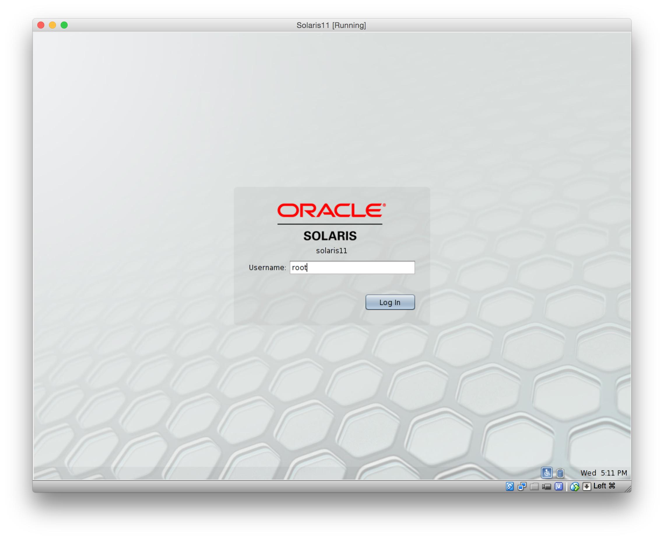Install VirtualBox for your system and download the image from the URL above (it's about 4gb). Double click the image file to import it in VirtualBox (or use the import function from the tool bar). After booting the Solaris system, it will show you a graphical login screen. Login with username root and password solaris11.