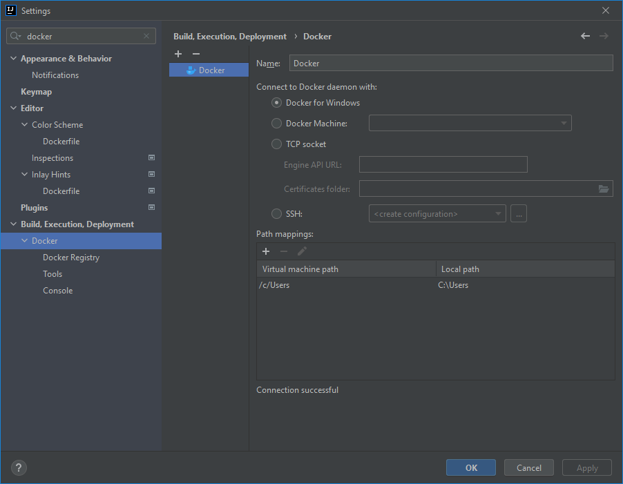 - Open File | Settings | Build, Execution, Deployment | Docker