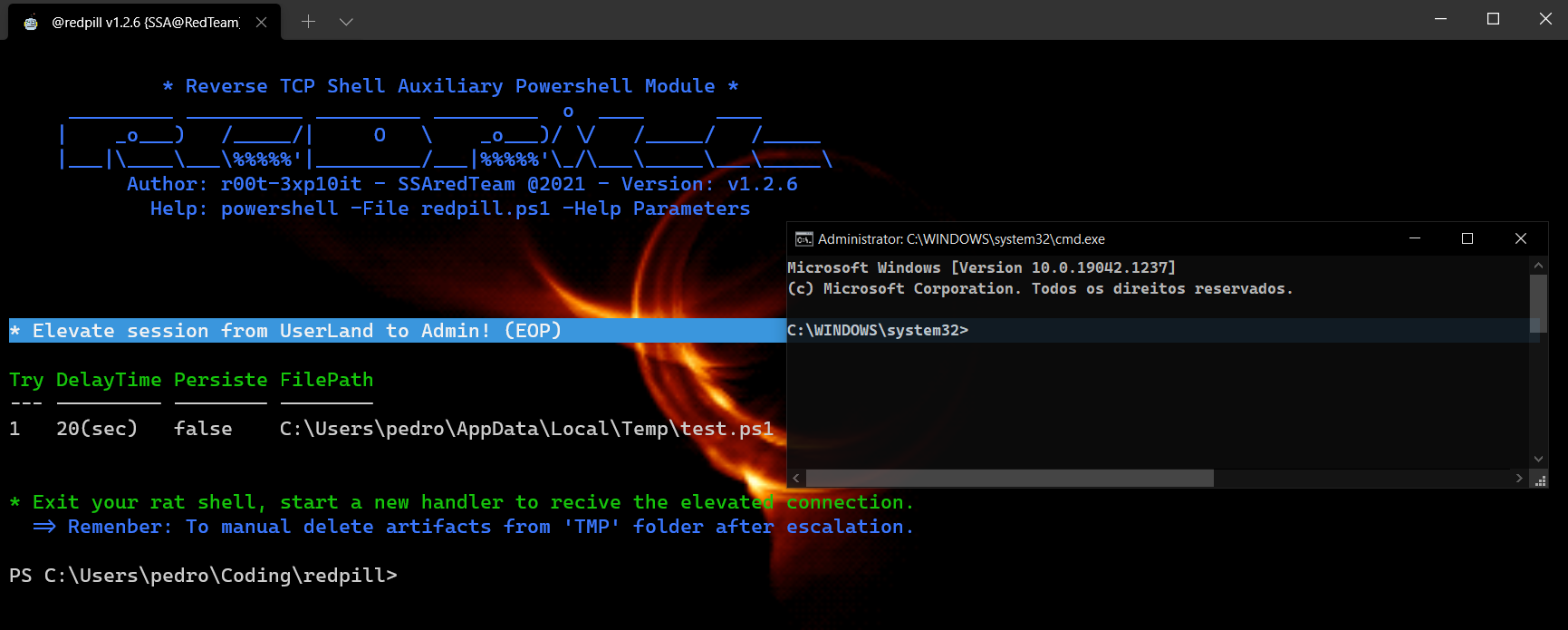| => Remenber: To manual delete artifacts from 'TMP' folder after escalation. | |