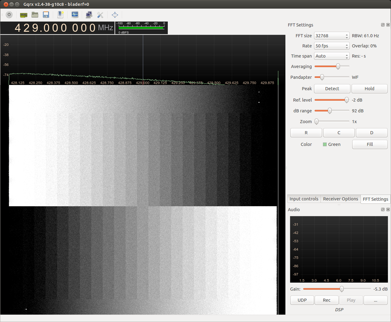 - Use a newer version of Gqrx with Ref. level and dB range sliders.