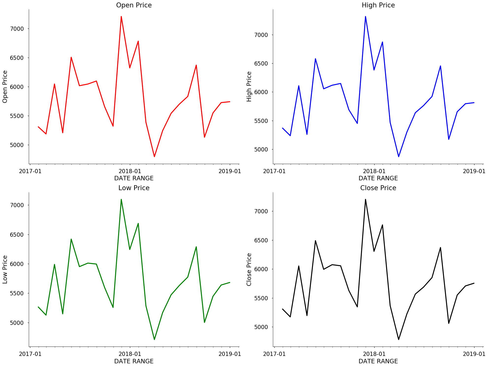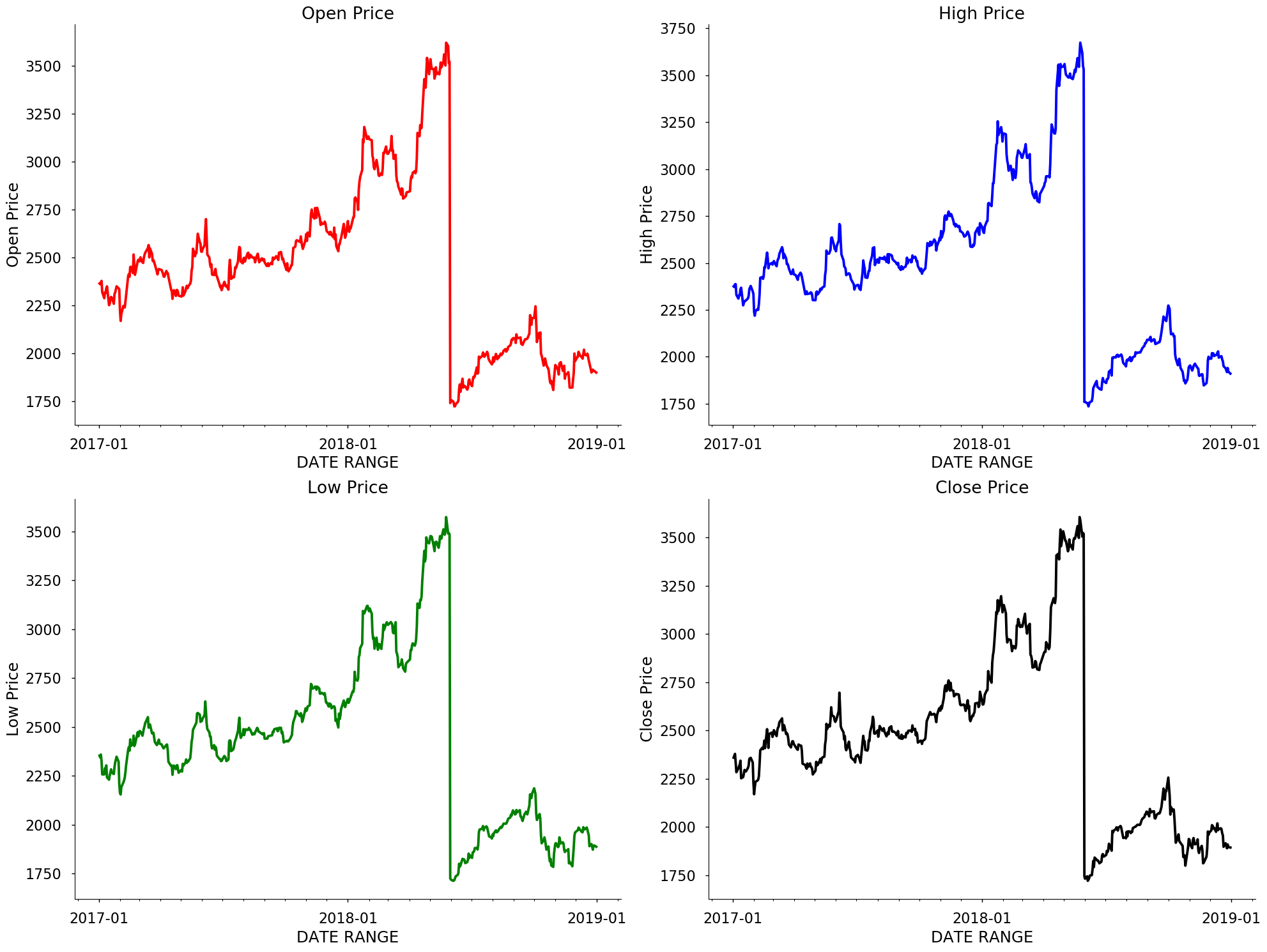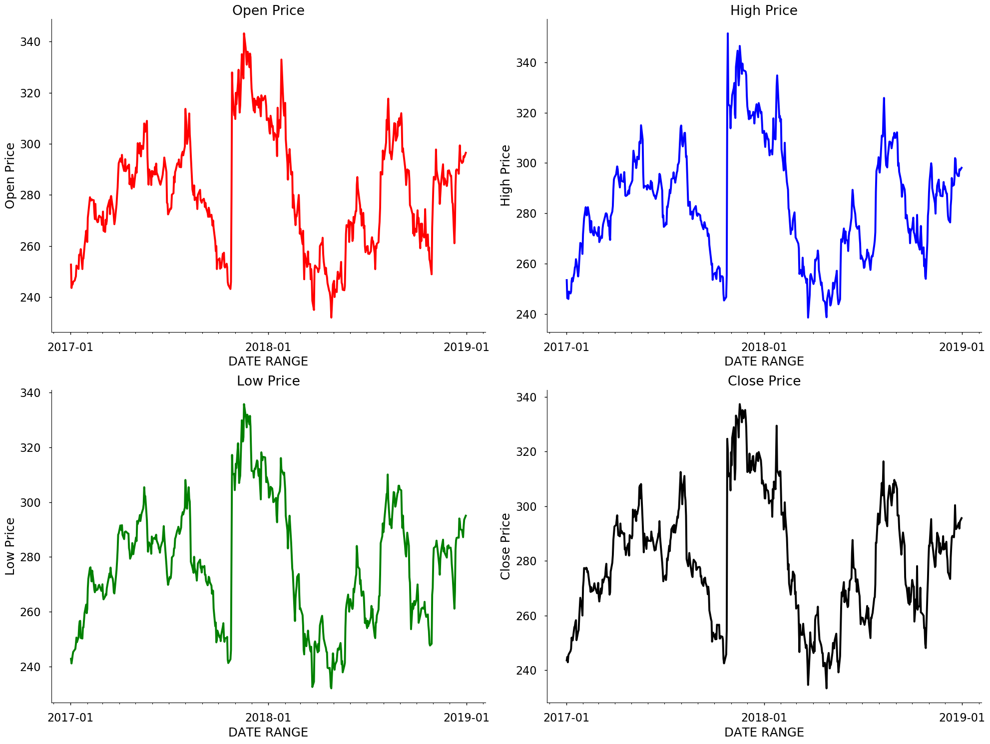 four_columns=['Open Price', 'High Price', 'Low Price', 'Close Price']