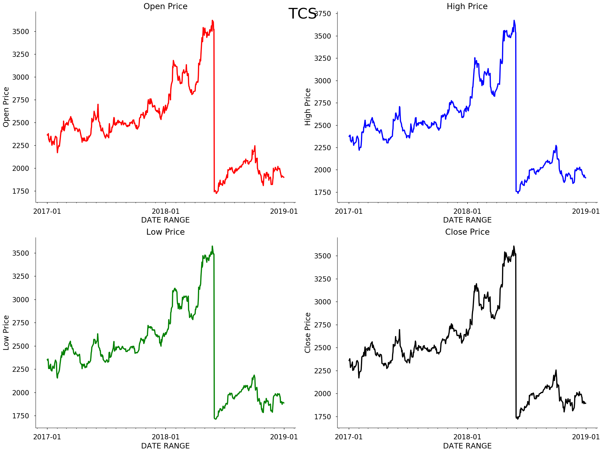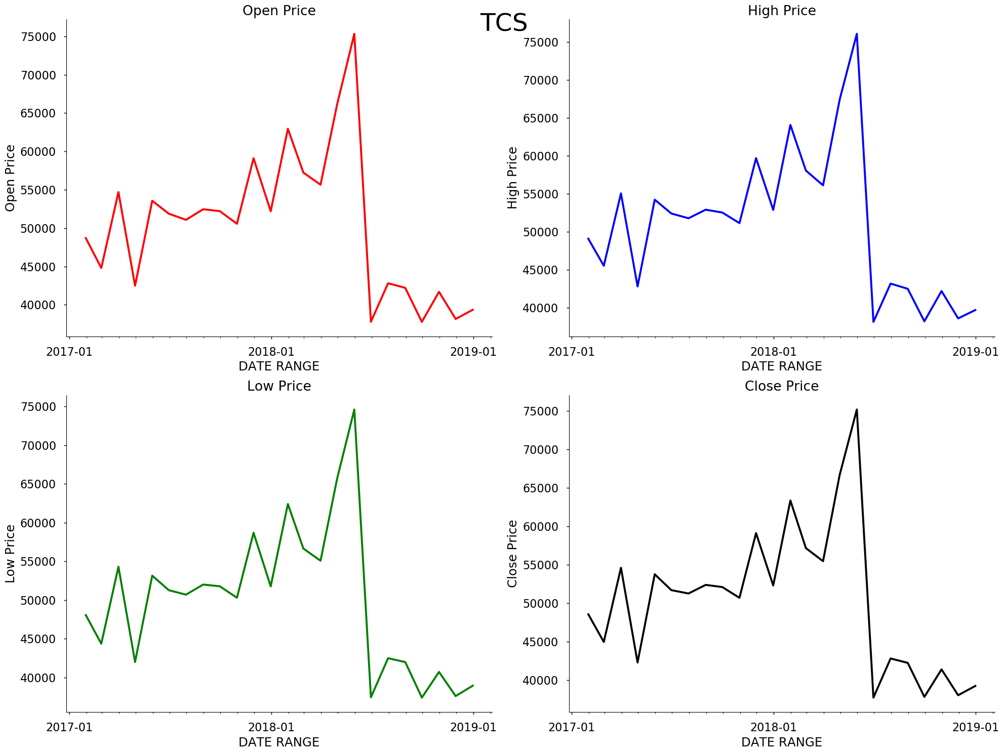 For most of Dataset (companies ) the stock price was showing increasing trend for the period of 2017-2018 (especially for tcs)