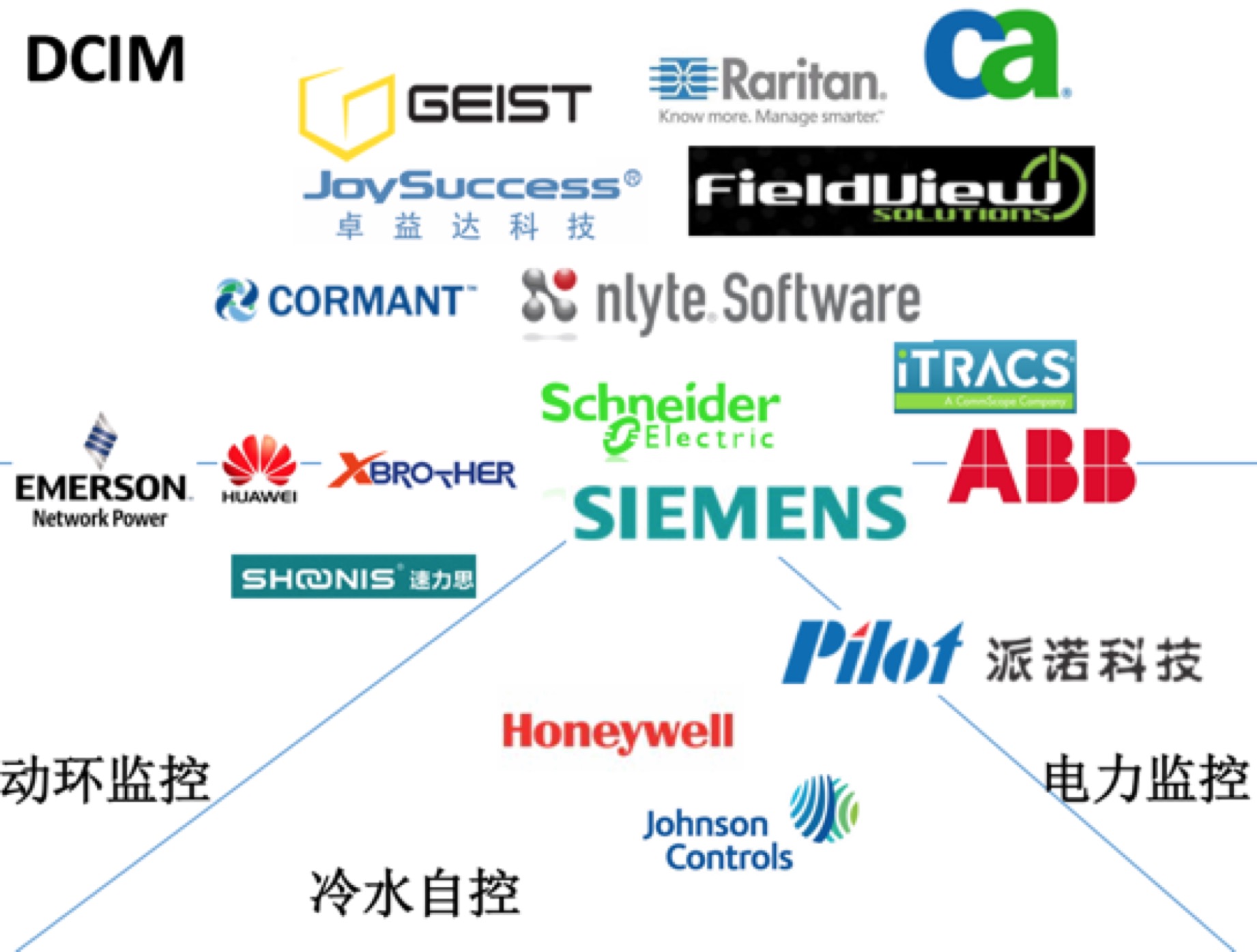 动力环境系统与冷水自控系统,目前是 O平台针对 IDC 现场数据中心重点接入和管理的现场基础设施。这里也涵盖了90%以上的 IDC 现场基础设施设备。 该领域在互联公司的数据中心涉足之前,更多的是大型企业、银行和电信公司有类似的平台需求。承接这些需求的,往往也都是硬件设备提供的厂家。业界领先的厂家包括:艾默生、施耐德、霍尼韦尔、江森自控、ABB等传统自动化工业领域领先的厂家,也包括:CA、Rartian一些比较领先的传统软件行业解决方案的厂家。