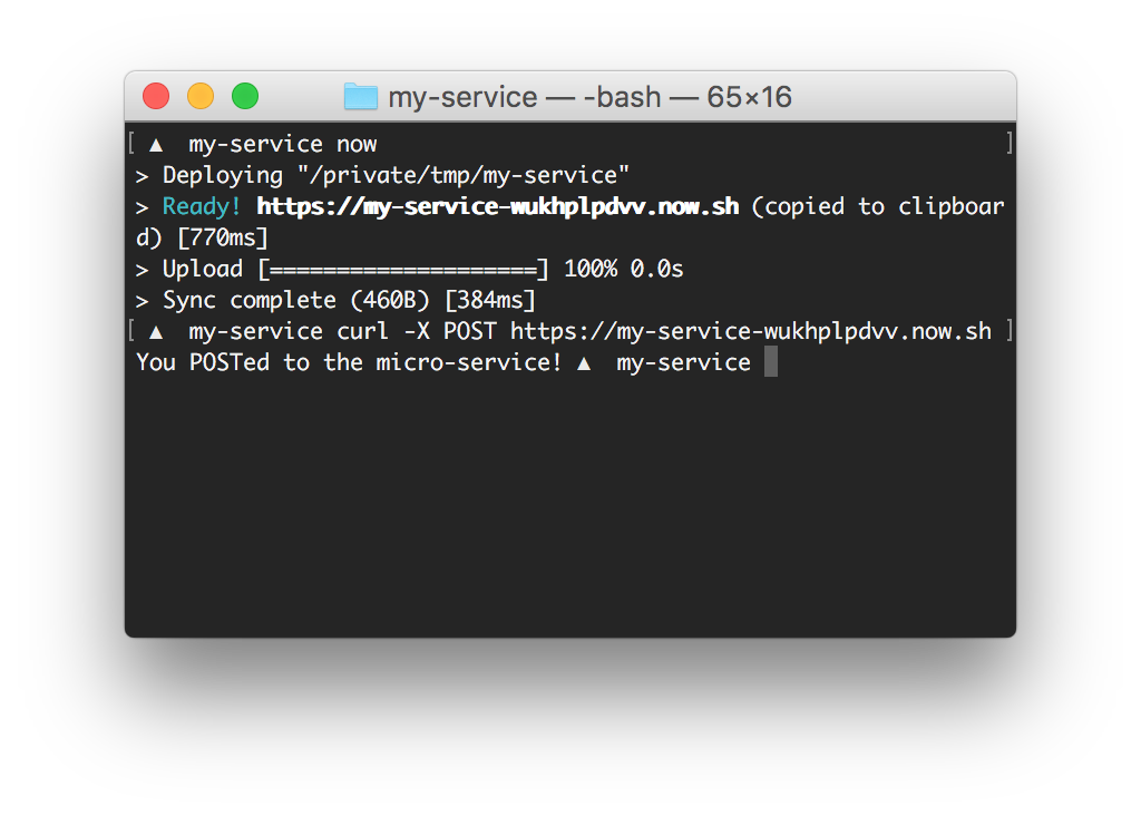 The following guide will show you how to deploy a simple microservice written in JavaScript using 𝚫 now.