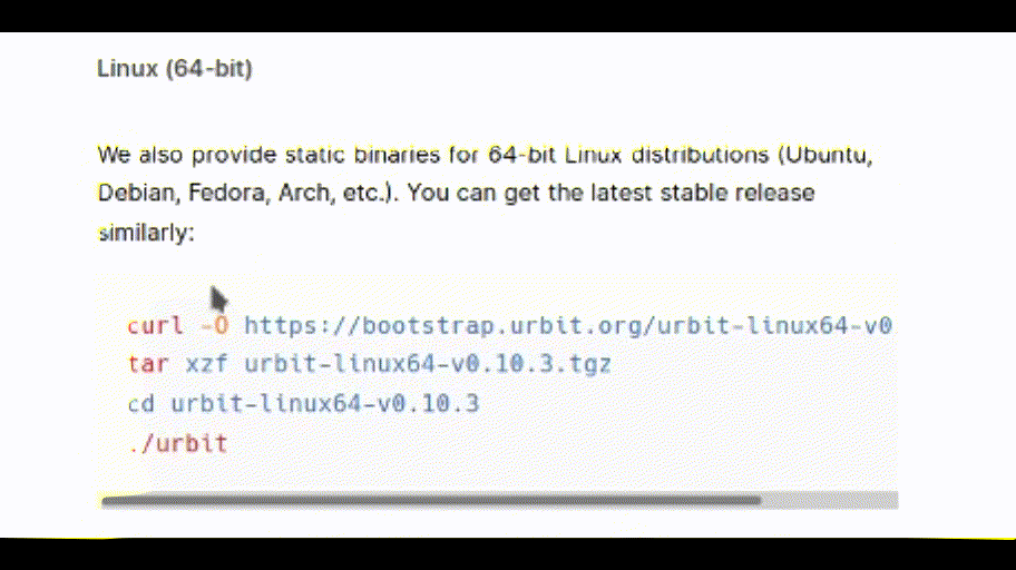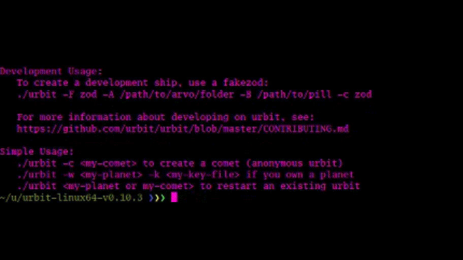 hey, glad you could make it! this is a basic guide (with gifs) on how to install urbit and boot a comet. this guide howeever will also be going into some of my own qol tricks, but youll see a bit later.