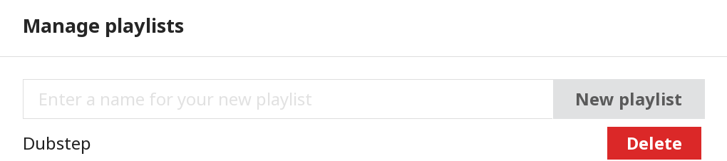 Then type in the name of the playlist you wish to create, and press the button. After you're done, you need to exit out of that (click the X), then you'll be back in the main screen. You should see a bar under the Playlists text. Click it, and switch to your new playlist.