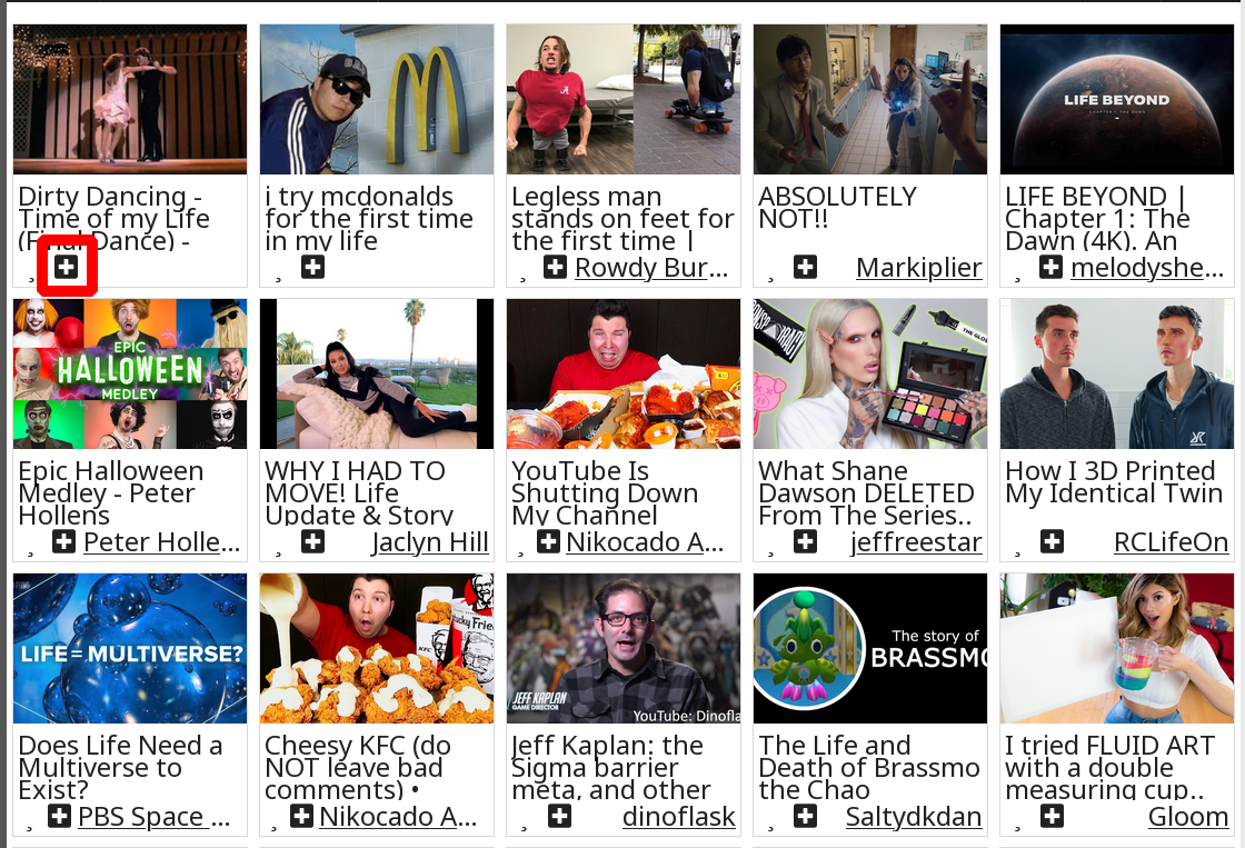 NOTE: You don't have to click the + button. If you click the video instead, the video won't be added to the playlist, but instead will be played immediately.