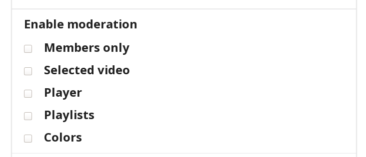 For each toggle you check in the Moderation menu locks that action to the owner of the room, e.g. if you were to check the "Player" setting, only the owner of the room can seek the current video.