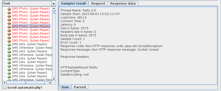 A group that behaves as twilio: 10 concurrent users where the batch repeats 10 times. The following requests are made randomly:
