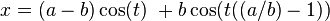 Where t increases monotonically, and k can be varied with the slider below, the (x,y) co-ordinates sweep out the curve of a distressed Cardioid. When k = 0.5 the curve sweeps out a perfect Cardioid.