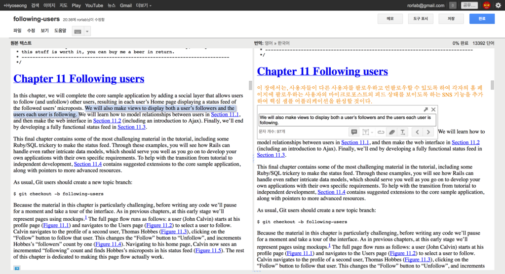 Ruby on Rails Tutorial을 한국어로 공동번역한다.